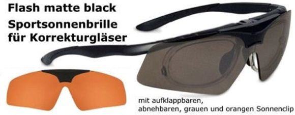 Flash RX Flip Up für Ihre Korrekturgläser, aufklappbarer, abnehmbarer und wechselbarer Sonnenglasteil, also eine Sportsonnenbrille für wechselnde Lichtverhältnisse.